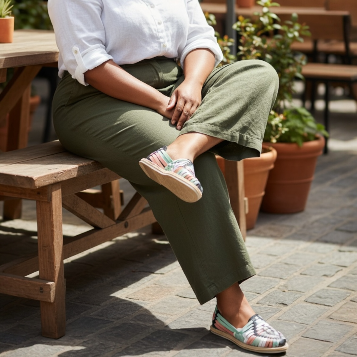 Cuentan con plantilla confortable y suela baja resistente, ideales para un estilo casual y fresco. Cada par refleja el trabajo detallado de la artesanía tradicional, convirtiéndolos en una pieza única que aporta color y personalidad a cualquier look.