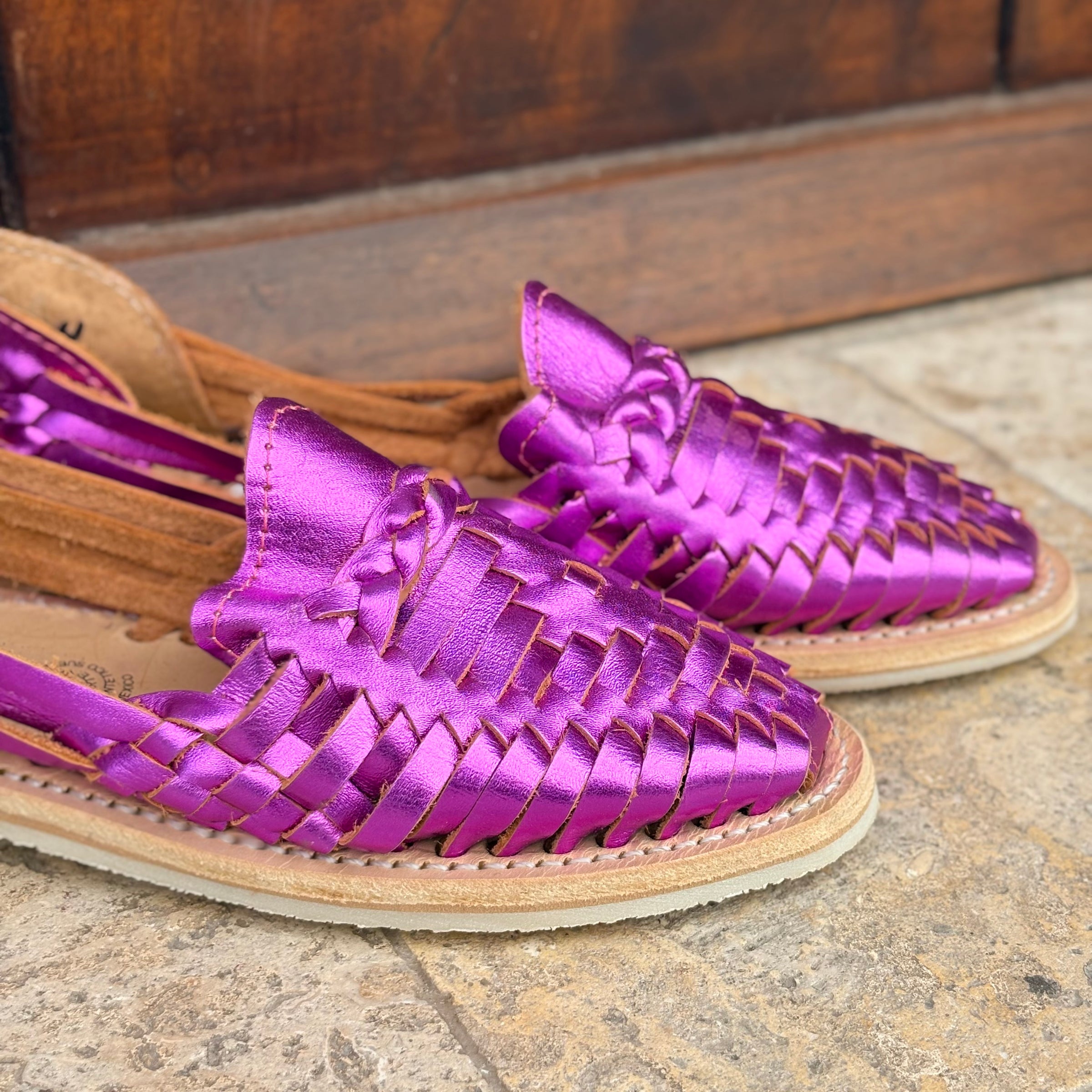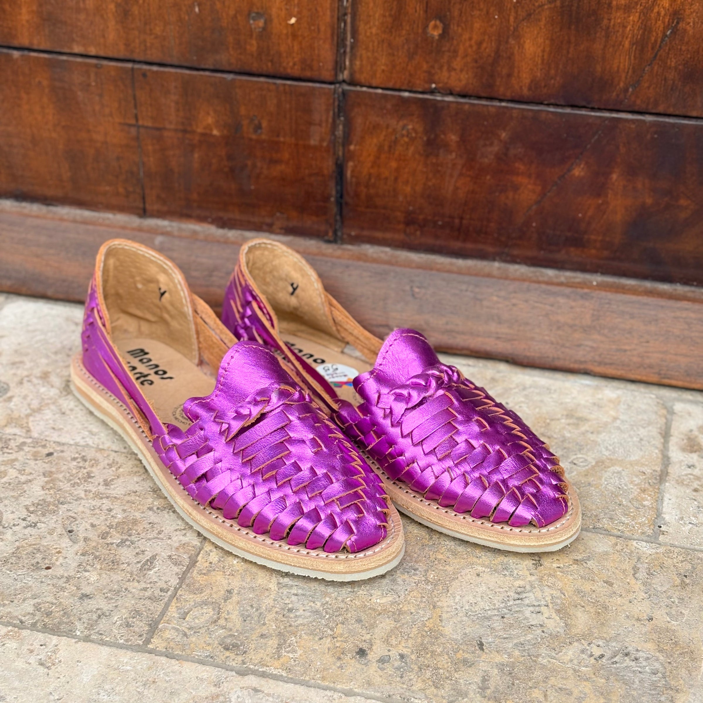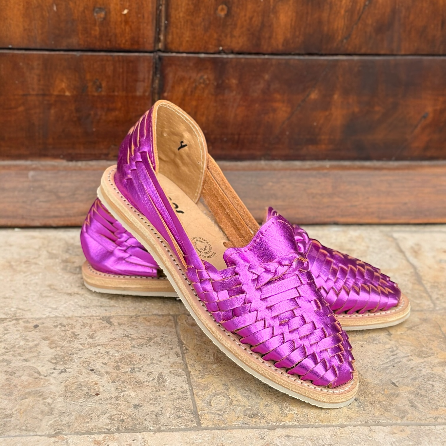 Flats de cuero tejido a mano con acabado tornasol. Calzado artesanal cómodo, elegante y elaborado en 100% cuero genuino.