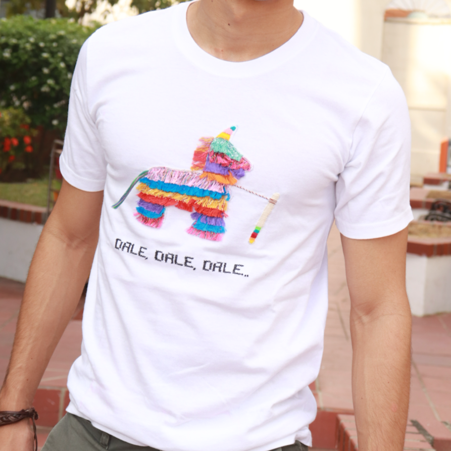 MEN'S COTTON T-SHIRT WITH HAND EMBROIDERED DESIGN WITH COLORED MEXICAN PIÑATA DESIGN MADE BY MEXICAN CRAFTSMANS